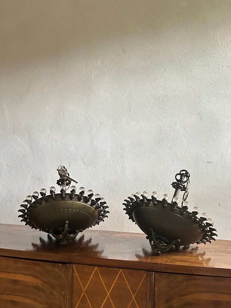 Pair of bronze and glass chandeliers commissioned for the Danish Police Yard.