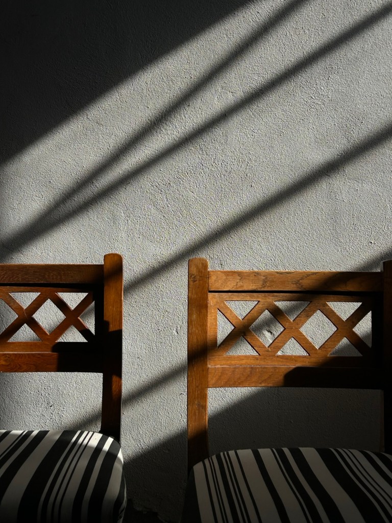 Set of four chairs in oak and fabric manufactured by Rud Rasmussen.