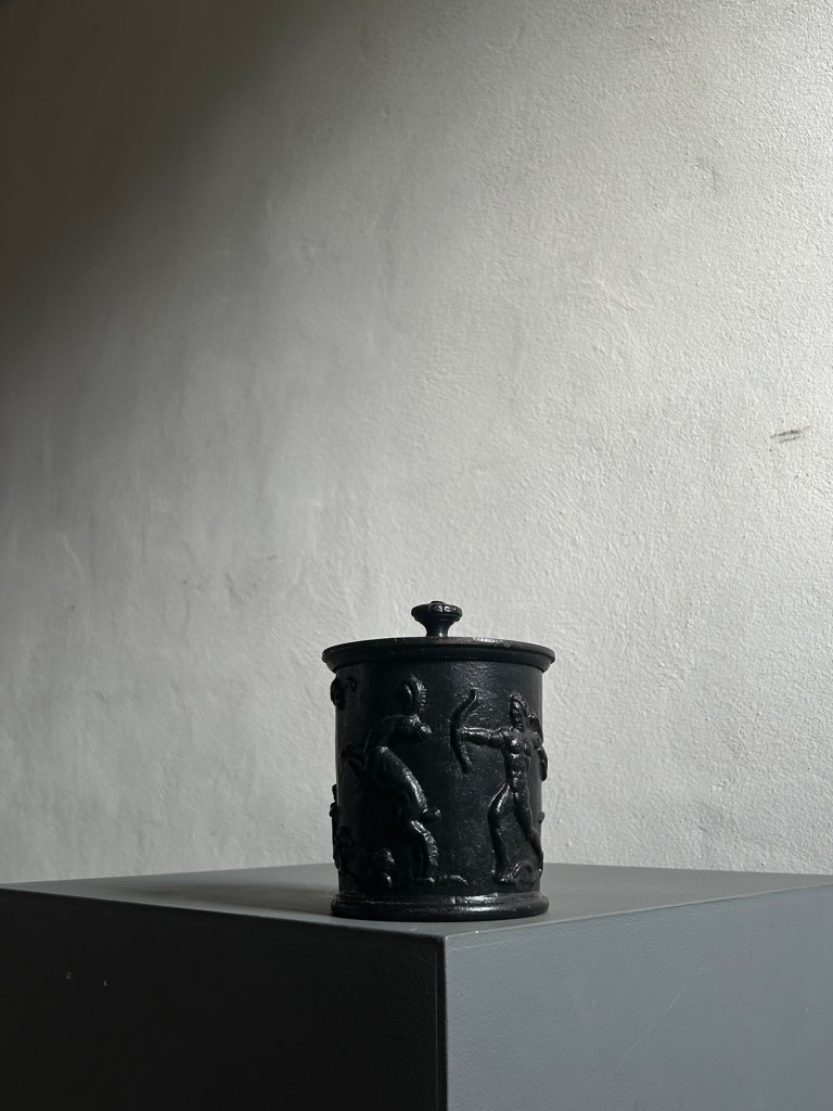 Lidded jar in cast iron, manufactured by Näfveqvarns Bruk.