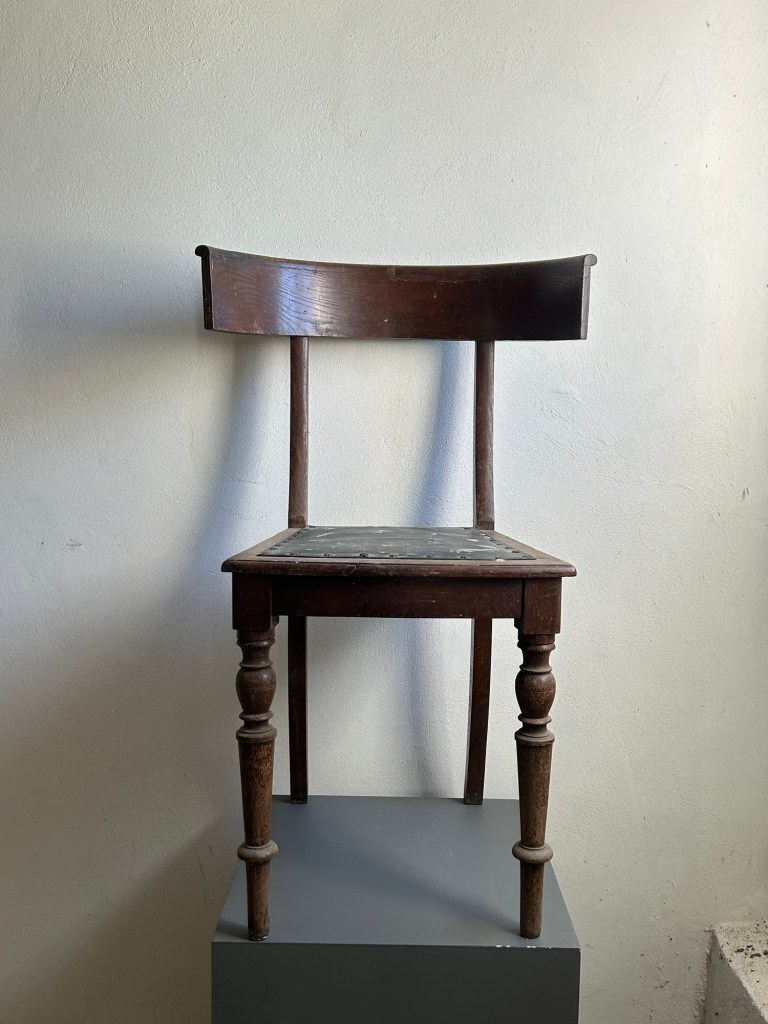 Klismos chair in stained oak with original leather.