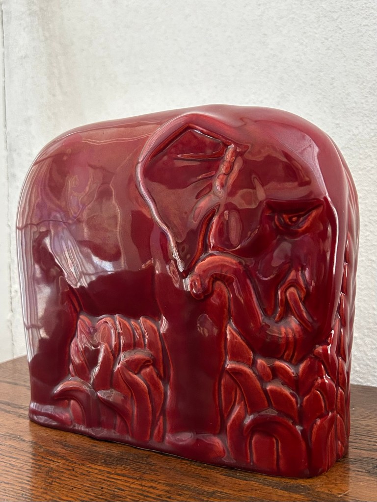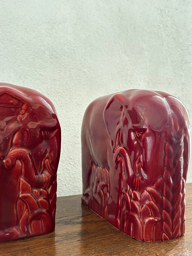 Bookends in ceramic with the rare red glaze, manufactured by Richard Ginori.