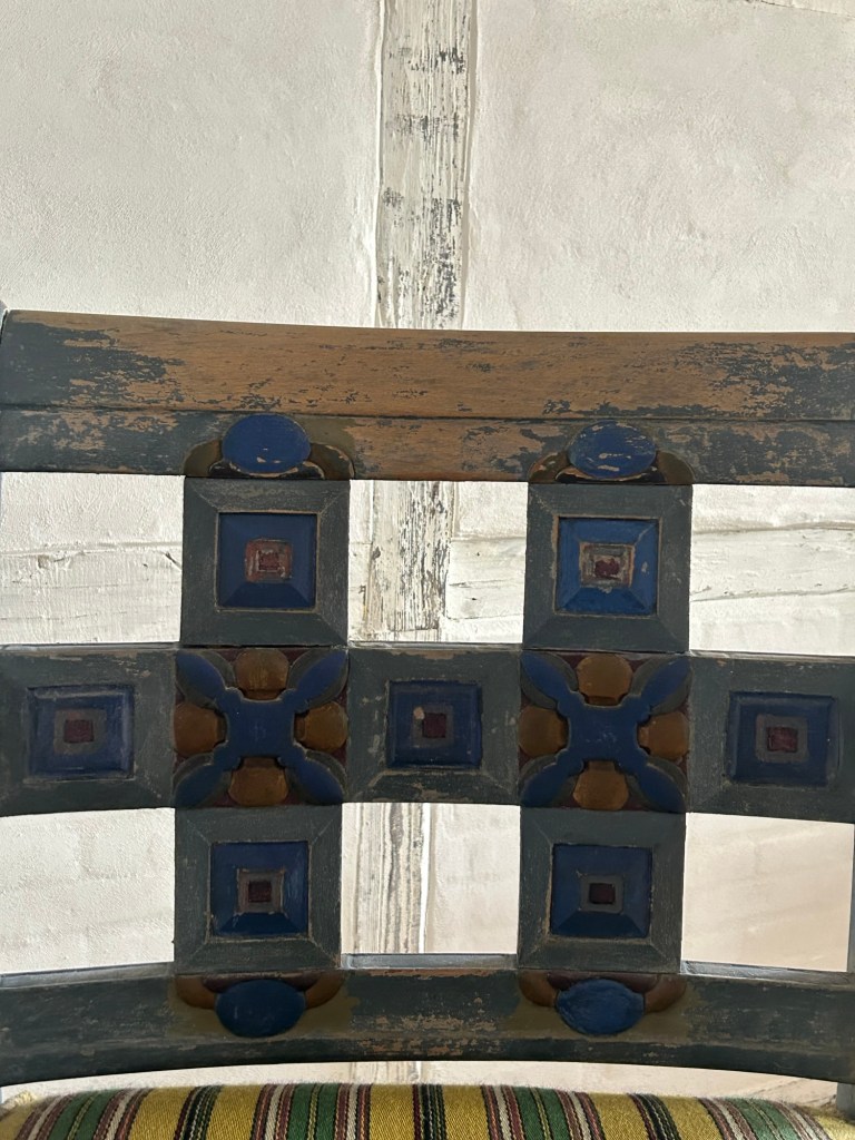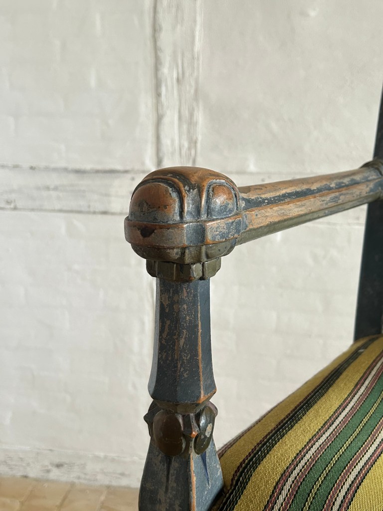 Lounge chair with the original painted decoration and fabric.